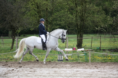 Premier concours pour BODEGUERO.ER, 4 ans et fils de QUEMADOR.ER, monté par Sophie PLAGNOL qui se classe 2ème de la reprise PRIMERA (Cycle libre 2ème année Préliminaire) sur 6 participants avec une moyenne de 70,6 %.